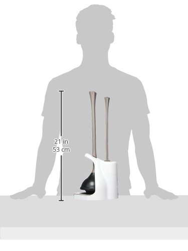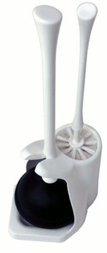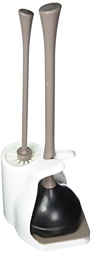 -. Title : Way Clean Combo Bowl Brush and Plunger, White/Taupe