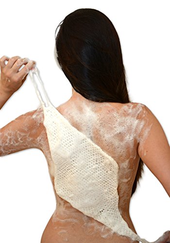 The Back Scrubber's patented, innovative design provides vigorous exfoliation to reveal younger, radiant skin in even the hardest-to-reach areas.Rather than a long narrow piece of material, The Back Scrubber was intentionally designed to be wider in the middle. This diamond shape prevents it from twisting and provides better coverage across the center of your back, the most difficult place to reach. Simply use your favorite bar soap in the built-in soap pocket or use liquid soap while showering or bathing to create a lather and immediately feel the benefit of a rejuvenating back scrub!
