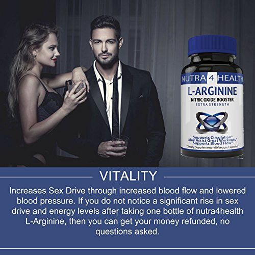 VITALITY: Increases Sex Drive through increased blood flow and lowered blood pressure. If you do not notice a significant rise in sex drive and energy levels after taking one bottle of nutra4health L-Arginine, then you can get your money refunded, no questions asked.