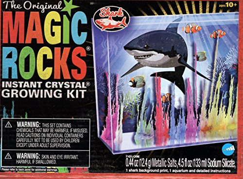 -. Binding : Toy -. EAN : 0042409029343 -. Feature : The Original Magic Rocks. / Educational; learn about the formation of Crystal. / Kit includes multi-colored stones that grow into beautiful crystals, a display tank and a shark. / Place colored stones into a solution and watch them grow into beautiful, colorful crystal formations. -. IsAdultProduct : 0 -. Label : NSI International -. LegalDisclaimer : WARNING: This set contains chemicals that may be harmful if misused - please read cautions on individual containers. Skin and eye irritant-harmful if swallowed -. Manufacturer : NSI International -. ProductGroup : Toy -. ProductTypeName : TOYS_AND_GAMES -. Publisher : NSI International -. Studio : NSI International -. Title : Magic Rocks Crystal Growing Kit - Shark -. UPC : 042409029343