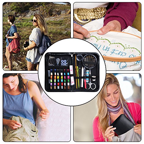 - ❤Sewing Simple to Carry: Items won't fall out when you open the case, needles in separate closed box for safety, and other items securely tucked in place with attractive black elastic bands. Smart & Compact design making it convenient to carry in anywhere you travel. With this kit in your bag, you'll never have to find a tailor for the basic repairs, be more self-sufficient and take care of repairs yourself!