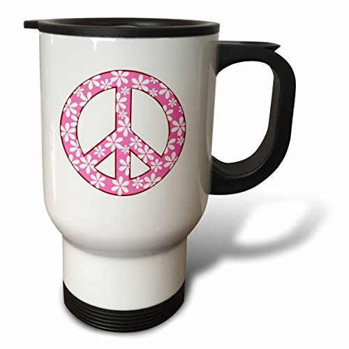 3dRose Pink and White Daisy Peace Sign Stainless Steel Travel Mug, 14-Ounce
