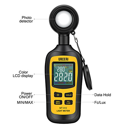 Studio : URCERI Publisher : URCERI Binding : Electronics Product Description Accurate Measurement Fast Response The light meter covers a measuring range up to 200,000 Lux with highly accurate results. At twice per second frequency, it has a high response rate so you can be rest assured to get both fast and quality readings.