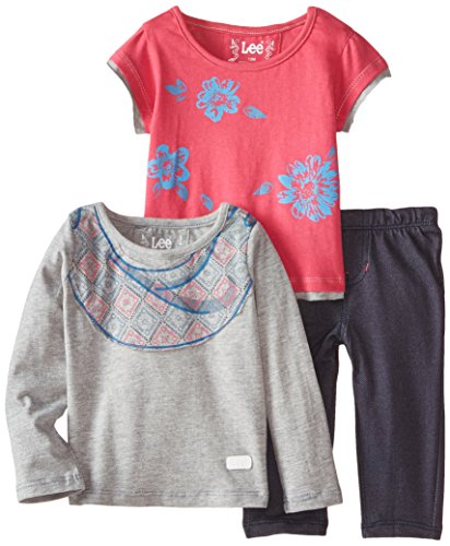 -. Binding : Apparel -. Brand : Lee -. Department : baby-girls -. Feature : 3 piece pant set / Heathered jersey long sleeve top / Jersey tee / Knit denim legging / Print, applique on tee -. Label : Lee Baby -. Manufacturer : Lee Baby -. PackageQuantity : 1 -. ProductGroup : Apparel -. ProductTypeName : SHIRT -. Publisher : Lee Baby -. Studio : Lee Baby -. Title : Lee Baby Girls' Knit Denim Legging 3 Piece Set