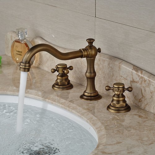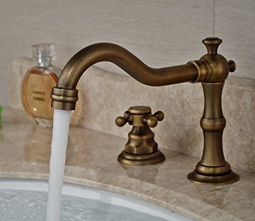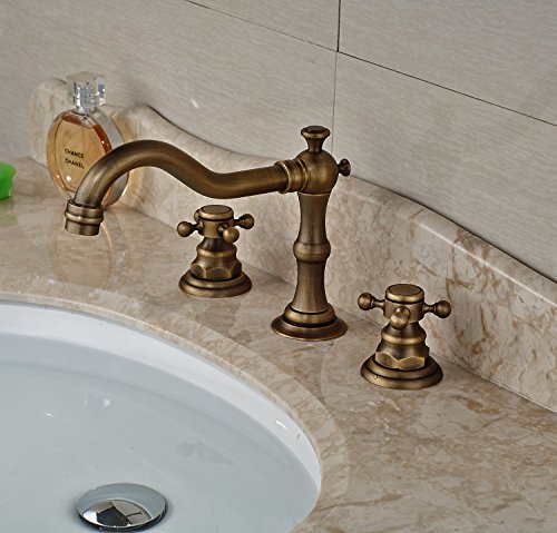 -. Title : Rozin® Antique Brass Widespread 3 Holes Bathroom Sink Faucet Dual Cross Knobs Mixer Tap
