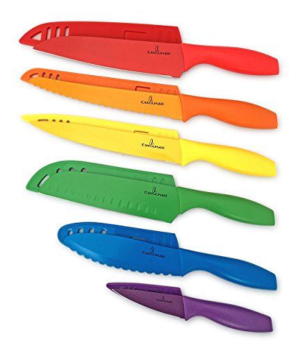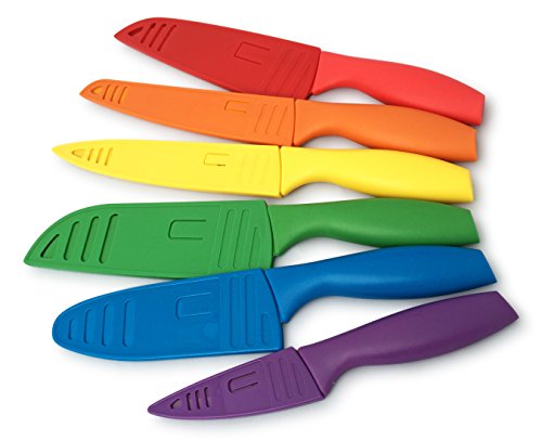 - EXTREMELY SHARP. KEEP KNIVES OUT OF CHILDREN’S REACH. Protective Sheath matching color to protect and securely store each knife after use.