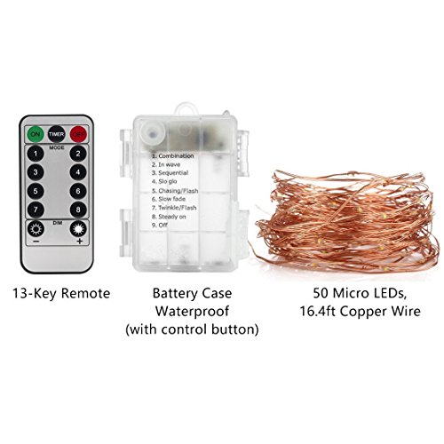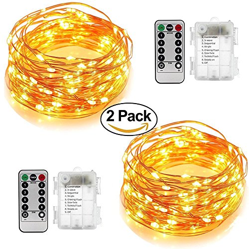 - Perfect for any occasion : You get 2 PACK of Battery Operated warm white Fairy Lights,each string light is with 16.4 feet moldable copper wire and 50pcs glowing micro Leds, which make every night romantic starry nights. Ideal for indoor and outdoor decoration, bedroom, patio, lawn and garden, deck, porch, gate, yard, wedding, party etc