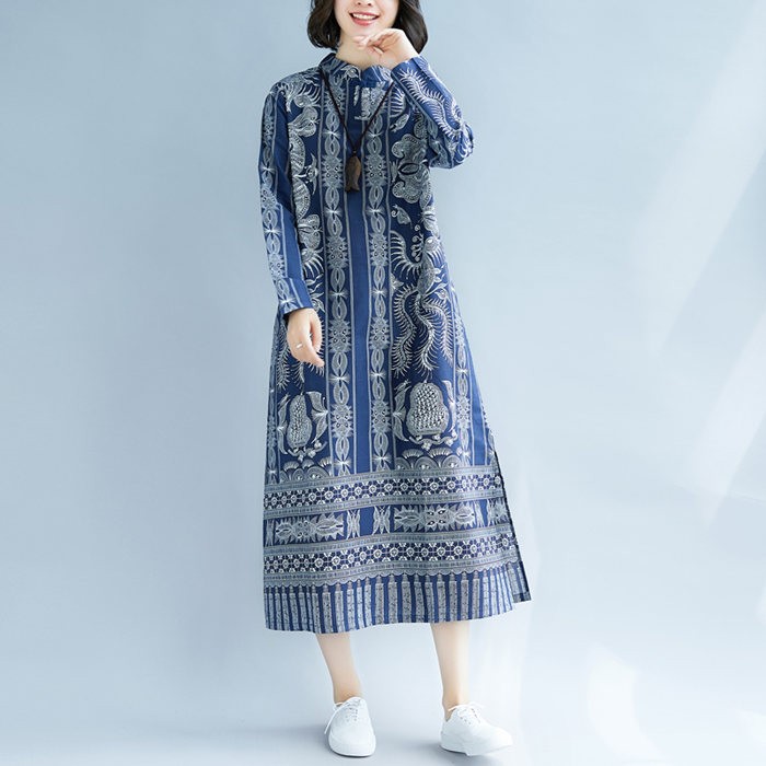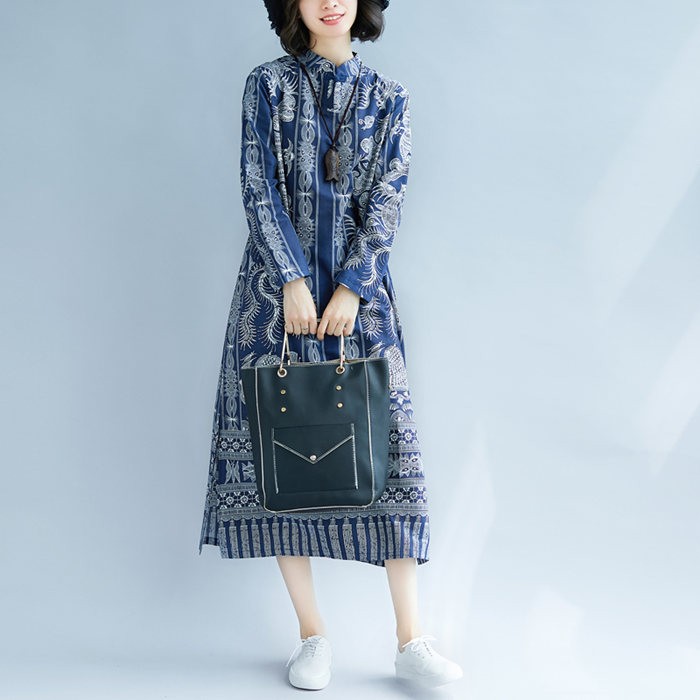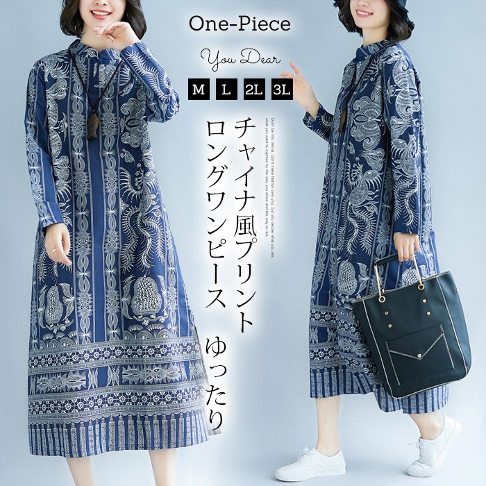 ■キーワード:ワンピース レディース 大きいサイズ ロングワンピース マキシワンピース ゆったり 体型カバー レディース 大きいサイズ ロング丈 マキシワンピース Aライン ワンピ 長袖 ブルー プリント 秋ワンピース 森ガール 大人 可愛い おしゃれ ワンピース ママワンピース 着痩せ ■使用シーン等:お呼ばれ 普段使い 通学 通勤 オフィス OL ママ お食事会20代 30代 40代 50代★サイズ:(単位cm)M:バスト102 袖丈53 肩幅39 着丈116L:バスト106 袖丈54 肩幅40 着丈116XL:バスト110 袖丈55 肩幅41 着丈1172XL:バスト112 袖丈56 肩幅41 着丈117