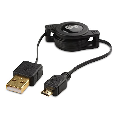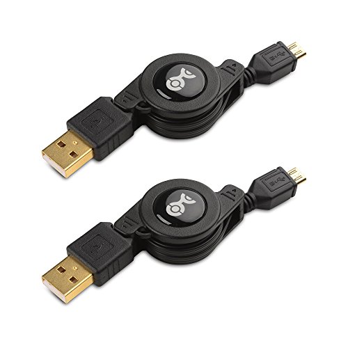 TANGLE-FREE RETRACTABLE DESIGN adjusts to the perfect length; Simply pull on both ends of the retractable USB cable to unwind to the ideal length and then pull the ends again to rewind; Fully retractable from 33 inches to 2 inches for storage in a glove compartment or desk drawer