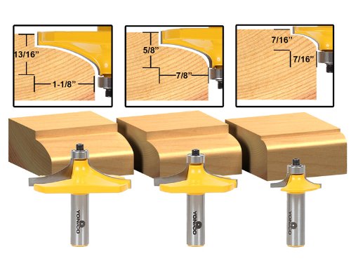 Yonico 13340 3 Bit Table Edge Thumbnail Router Bit Set with 1/2-Inch Shank