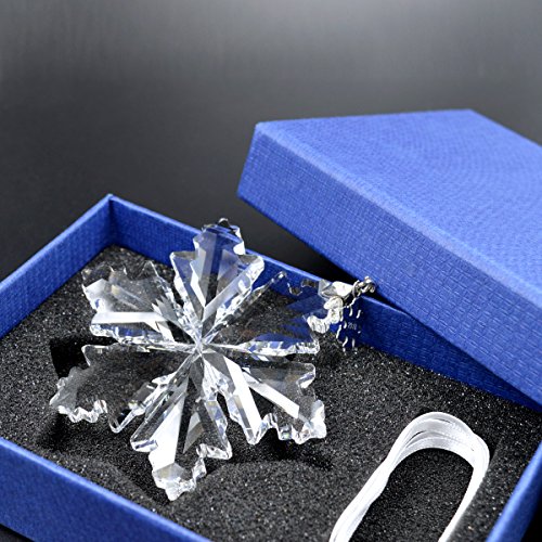 Crystal Snowflake Pendant Hexagonal star Snowflakes Christmas Decorations ,Christmas tree Charm Jewelry(Year tag Detachable)