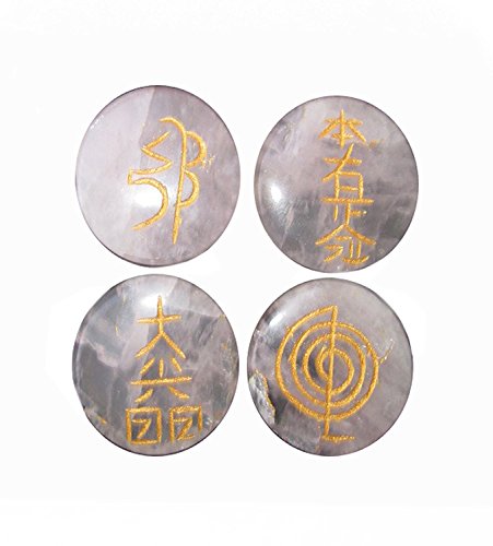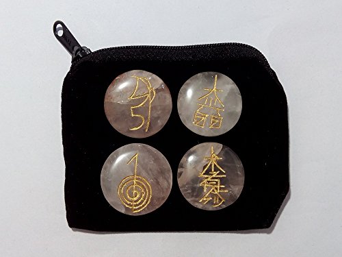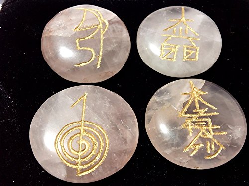 WholesaleGemShop Rose Quartz Usai Reiki Set With Velve Purse Feng Shui Energy
