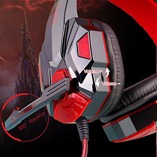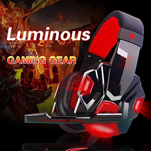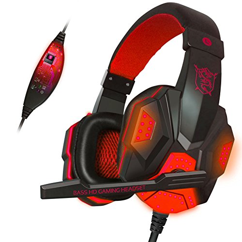 Gaming Headset, TNI HD Quality Gaming Headset with 40MM Driver, Double Bass, Volume Control, Two 3.5mm Mic/Stereo Plug + USB for LED - Model TNI-BfHS-011RD