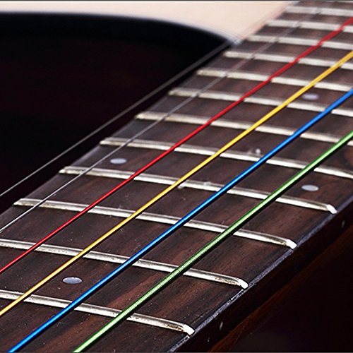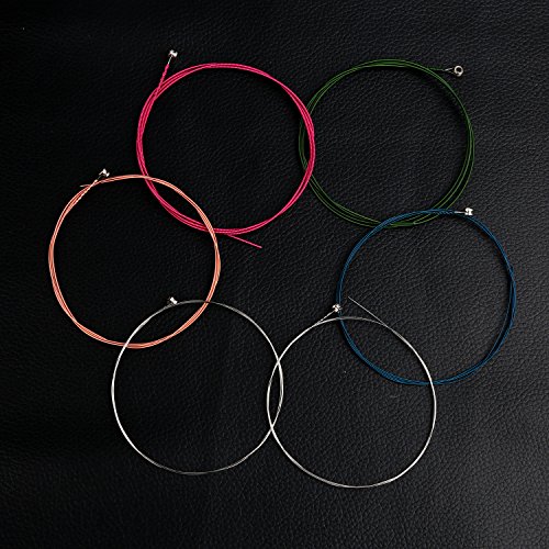 Specification: Material: Steel Diameters: 1: 0.2 mm/ 0.007 inch; 2: 0.3 mm/ 0.01 inch; 3: 0.6 mm/ 0.02 inch; 4: 0.7 mm/ 0.027 inch; 5: 1 mm/ 0.039 inch; 6: 1.2 mm/ 0.047 inch Weight: 32 g/ 1.12 ounce Color: Blue, Rose Red, Brass, Green, Silver and Gold ? Package details : 12 * Guitar Strings, 4 * Picks(4 gold strings and 2 silver strings in a set,? multicolor strings in another set) 0 |