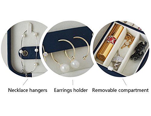 -. Feature : Approximate Jewelry Box Dimensions (L x W x H): 18.2 x 11.2x 8cm/7.1x4.4x3.1inch / SUPERIOR QUALITY:made of PU leather exterior and eco-friendly plant flannel interior,protect jewelry from scratching and damaging. / Two-layers and removable design provides more space.Earrings, rings, bracelet, necklaces can be held,4 necklace hangers+4 earring holder,on the first layer,there is 4 ring holder and two removable dividers to meet different needs. / UNIQUE,CONVENIENT & ATTRACTIVE DESIGN - Jewelry Box boasts a unique,beautiful and a more convenient design than the other jewelry boxes out there. Our talented team of designers have worked hard to produce the perfect balance of modern,beauty and class to create this unique box . Unlike others our box possesses a magnetic snap that can be easily opened and closed with one hand for the most convenient use. / Pratical and fashionable, this small jewelry box is a thoughful gift for wedding party, birthday party to participants.