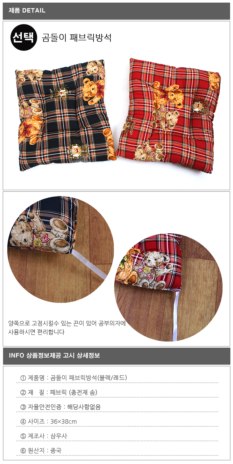 | 품명 및 모델명 | 곰돌이패브릭학생방석 |