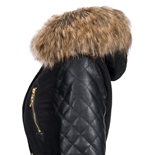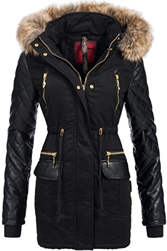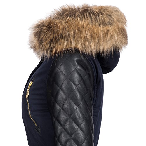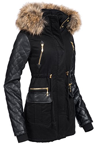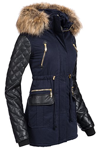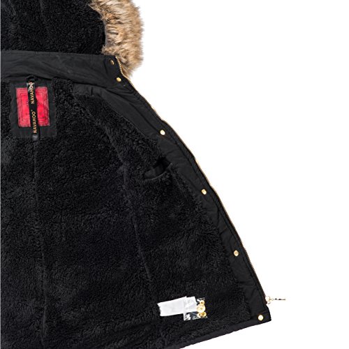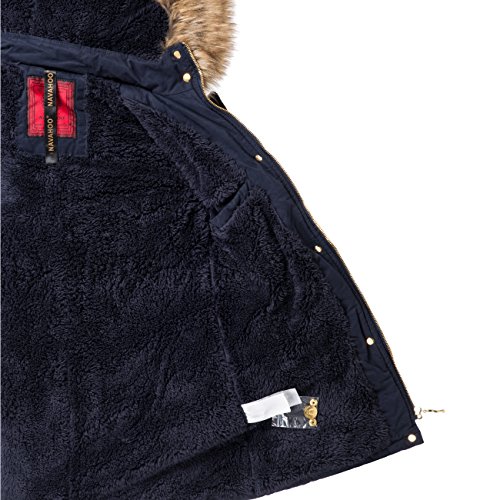 -. Binding : Textilien -. Brand : Navahoo -. Department : Damen -. Feature : EXTREM HOCHWERTIG: Top-Modischer Winter Parka mit hochwertigsten Materialien in überragender Verarbeitung wie sonst nur bei deutlich teureren Jacken / SUPER PASSFORM: Durch die taillierte Form ist die Winterjacke ein echter Figur-Schmeichler / OPTIMALE FUNKTION: Ideal für den Winter, mit weichem Teddy Fleece warm gefüttert; Hochkragen gegen Wind / EDLE OPTIK: Edles Baumwoll Obermaterial der Jacke mit angesagten Kunstleder Ärmel / NÜTZLICHE DETAILS: Durch Druckknopf-Leiste verdeckter Front-Reißverschluss; gut sitzende Bündchen; mit Druckknöpfen verschließbarer Kragen -. ProductGroup : Apparel -. ProductTypeName : OUTERWEAR -. Title : Navahoo Sara Damen Winter Stepp Mantel mit großer Kunst-Fell-Kapuze