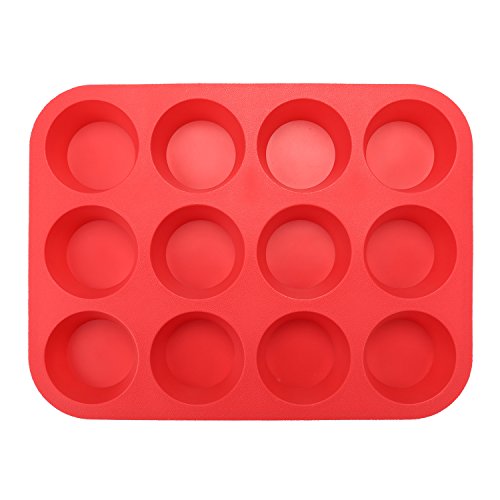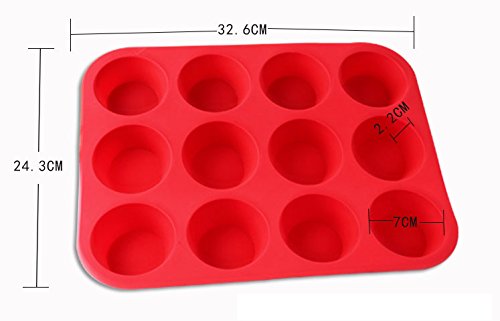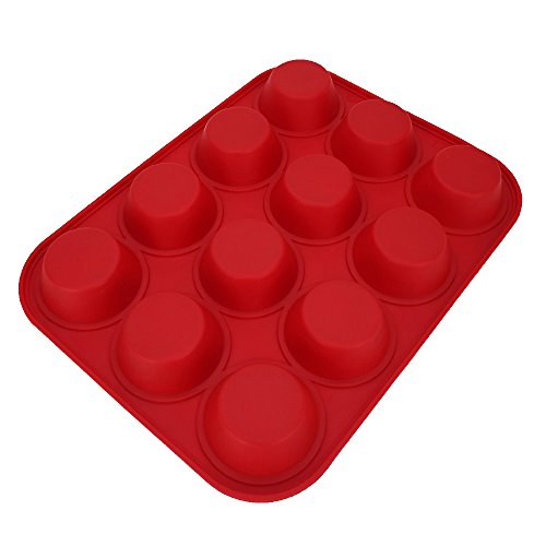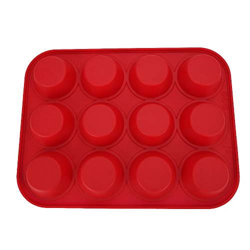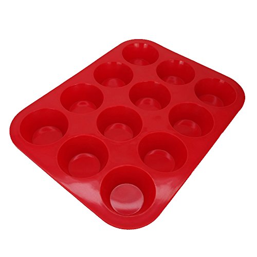 Sohapy Red 12 Cup Silicone Muffin Pan and Cupcake Pan Maker, BPA Free, Heat Resistant,Non-Stick Bakeware, Microwave Safe