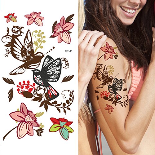 -. Binding : Misc. -. Brand : Supperb -. EAN : 0640052273665 -. Feature : Package include: 1 sheet of temporary tattoo / Size: 8 x 4 inches wide and tall (20cm x 10cm) / Waterproof. They will not wash off and will last for 3 days. Removes with baby oil. / Precut tattoos dab on with water in seconds, brush with your skin-toned face powder to set. / Quality temporary tattoos. Supperb (®) is a registered trademark and protected by copyright and trademark laws under U.S. and international law. All rights reserved. Make sure to buy from a trusted authentic source and you will be very glad with your purchase. -. IsAdultProduct : 0 -. MPN : ST-41 -. PackageQuantity : 1 -. PartNumber : ST-41 -. ProductGroup : Beauty -. ProductTypeName : BEAUTY -. Title : Supperb® Temporary Tattoos - Mayflowers & Birds -. UPC : 640052273665