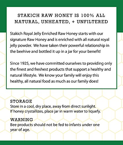 Stakich ROYAL JELLY Enriched RAW HONEY - 100% Pure, Unprocessed, Unheated - 40 oz