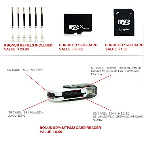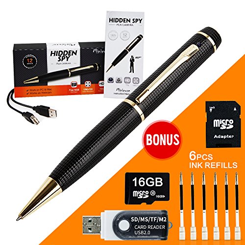 -. Feature : 720P TRUE HD Recorder.Meticulously engineered to perfection for crystal clear video recording. Just one click on and one click off allows you to start/stop recording video right away. Inbuilt rechargeable Polymer Lithium battery (220mAH) offers class leading recording time. Non-Stop VIDEO Recording mode, or use MOTION DETECTION VIDEO RECORDING MODE allows you to record everything you want to record, while maximizing battery life / "PROFESSIONAL STEALTH HIDDEN CAMERA EXECUTIVE PEN - PLUG & PLAY into any PC/Mac. Simply record your footage, plug the spy pen into your computer with the included USB cable, and review your footage.Our spy pen camera is made adhering to the highest manufacturing standards. Multifunction 1280x720p video frame rate 30 FPS QUALITY and photo resolution is 1280x1024 which is higher than any SPY PEN on the market! / NO SOFTWARE TO LOAD - This is the best plug and play pen on the market! user-friendly that a child could operate it, this Pen Camera is both PC and Mac Compatible 2.0 USB (with included USB cord). Date stamps can be added as reference points on any recordings or images, so organizing your data is breeze. There is no need to install a driver into the PC. Convenient, compact and fun, it does not get much better than the Amazing Pen Camera. Compatible with WINDOWS98/98SE/ME/2000XP/MAC OS/LINUX. / BONUS INCLUDED 6X Ink refill ($26.9 value) & free 16GB SD Card ( $30 value)& SD/MS/TF/M2 card reader+SD card adapter($7.9 value).The pen supports up to 32GB.Easy plug and play operation with its own full size built-in USB connector. You can use the USB cable to charge the pen camera through the computer.Plug it into the USB port of your smart TV for instant picture and video viewing. Do it at your next family gathering and see the amazed look on everyone's face when they see themselves on TV. / 90 DAY MONEY BACK GURANTEE+365 DAY WARRANTY- Special Offer For Limited Time Saving You Money! Don't Miss Out Buy now and enjoy a 12 MONTH WARRANTY with our 90 day ""No questions asked"" money back guarantee! If you have any questions/comments we would love to hear from you !Don't Miss The Spy Pen,Free 16GB Micro Card Included For HD Video and Image Recording"