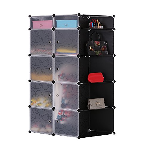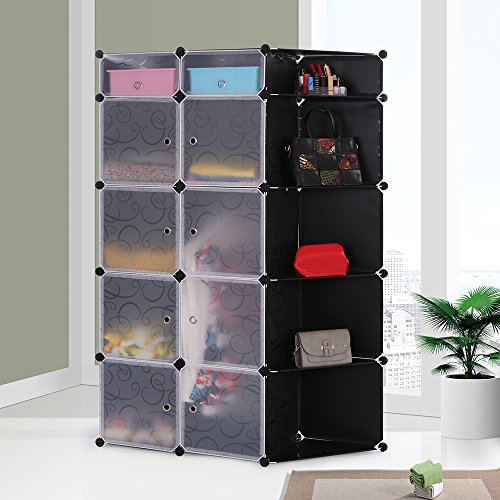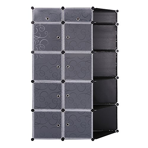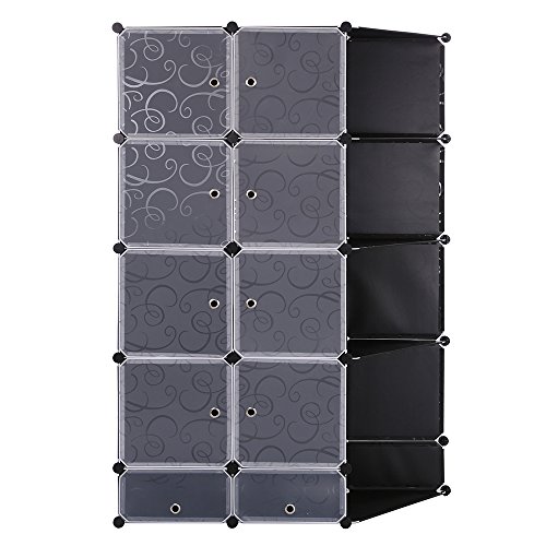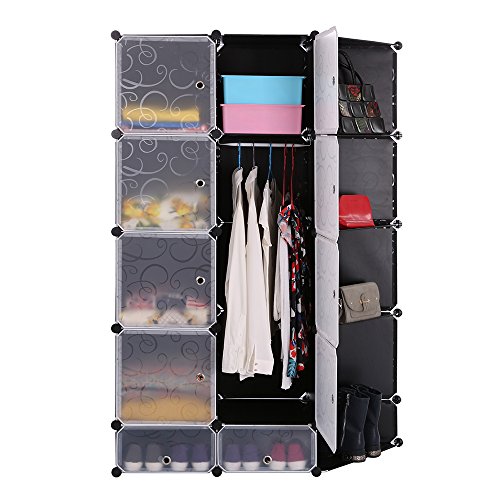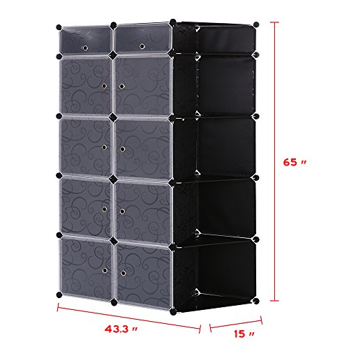 15 Cube Portable Clothes Closet Wardrobe by Freestanding Storage Organizer with Doors, Large Space and Sturdy Construction (Black)