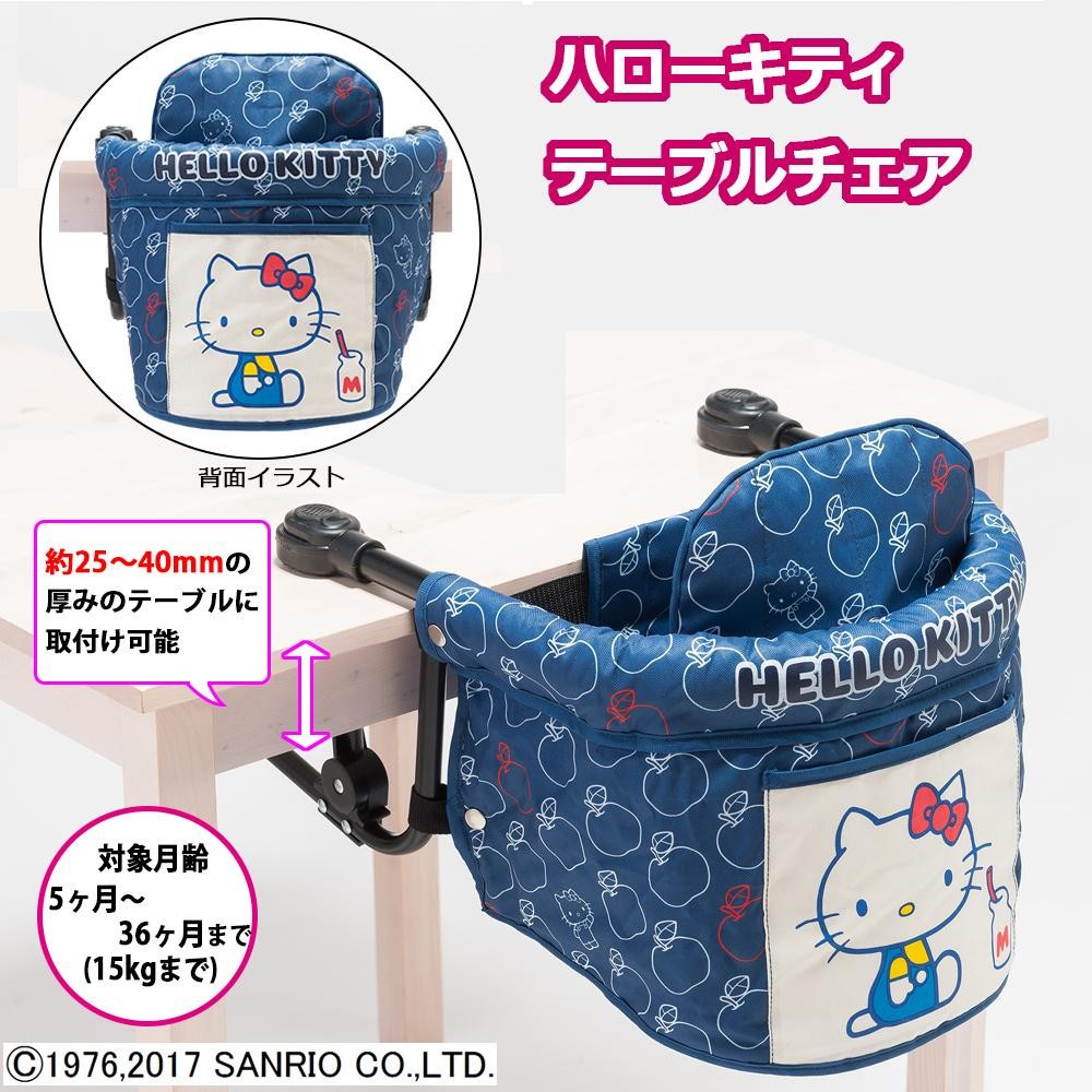 | 背面に大きなキティちゃんが描かれたテーブルチェアです。イラスト部分はポケットになっています♪ダイニングテーブルにそのまま付けるだけなので、おうちでも、お出かけ先でも使えます。お食事やお絵かきなど、家族団らんにも最適♪ママの家事中の待機場所としても活躍してくれます。 |