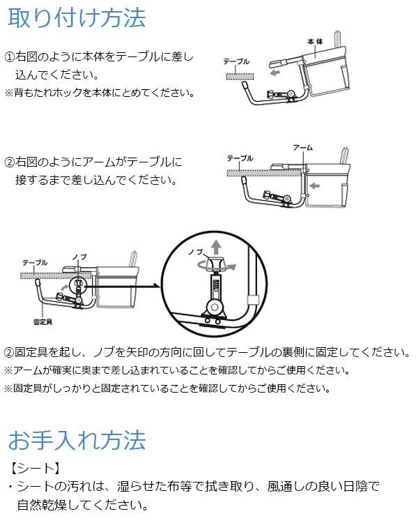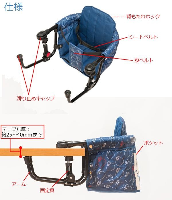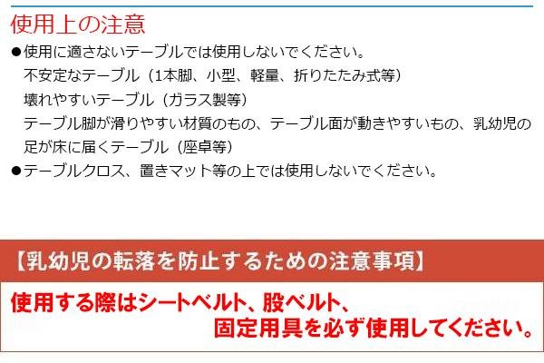 | 仕様 | ・完成品 ・対象月齢:5ヵ月~36ヵ月(約15kgまで) ・取付け可能なテーブル厚:約25~40mm |