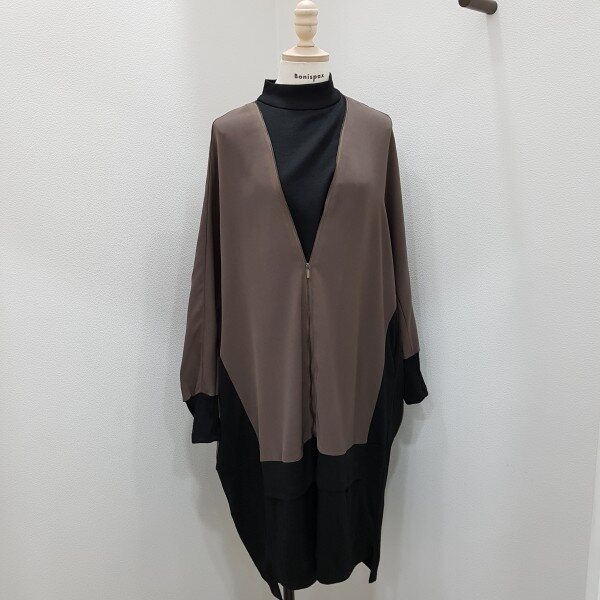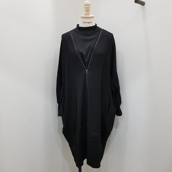 2018년 가을 신상 원피스로, 앞판에 지퍼를 가미해 유니크한 매력이 돋보이는 디자인입니다.