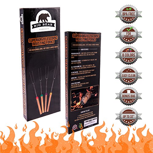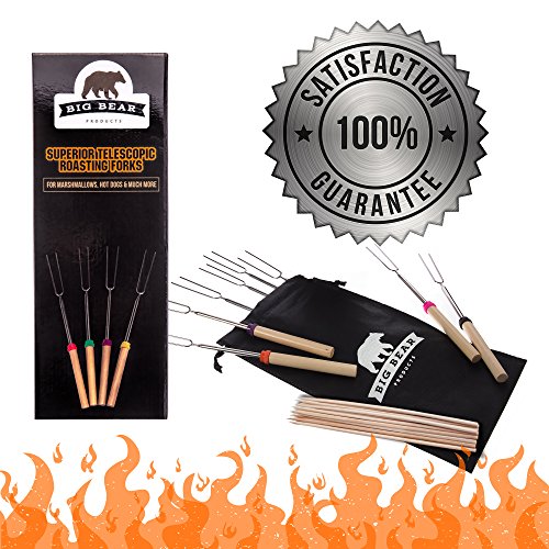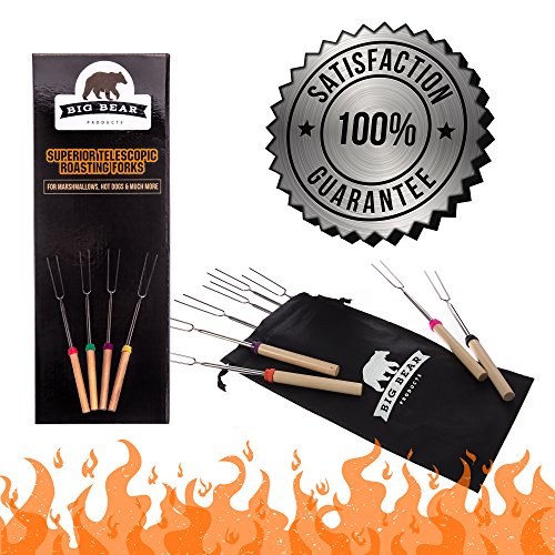 Big Bear Extendable Marshmallow Roasting Sticks,32" Stainless Steel Premium Telescoping Smores ...