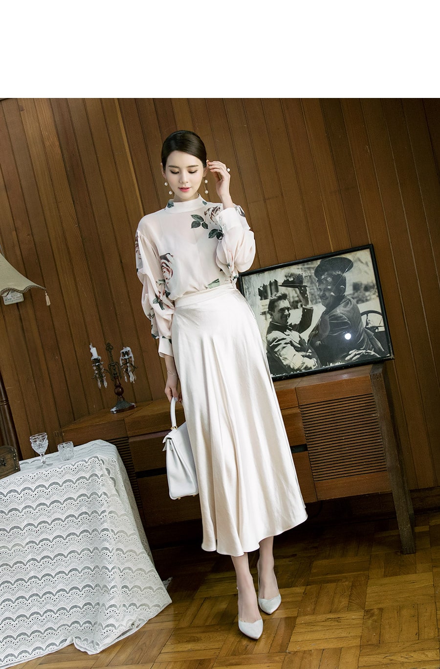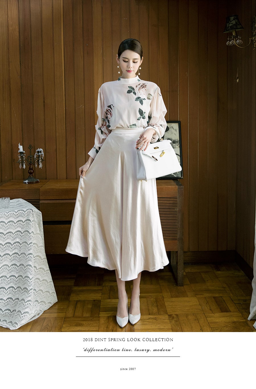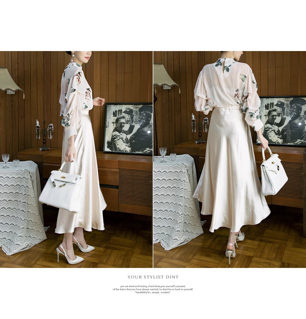 SK1690 에즈라 롱 새틴 스커트 Beige
