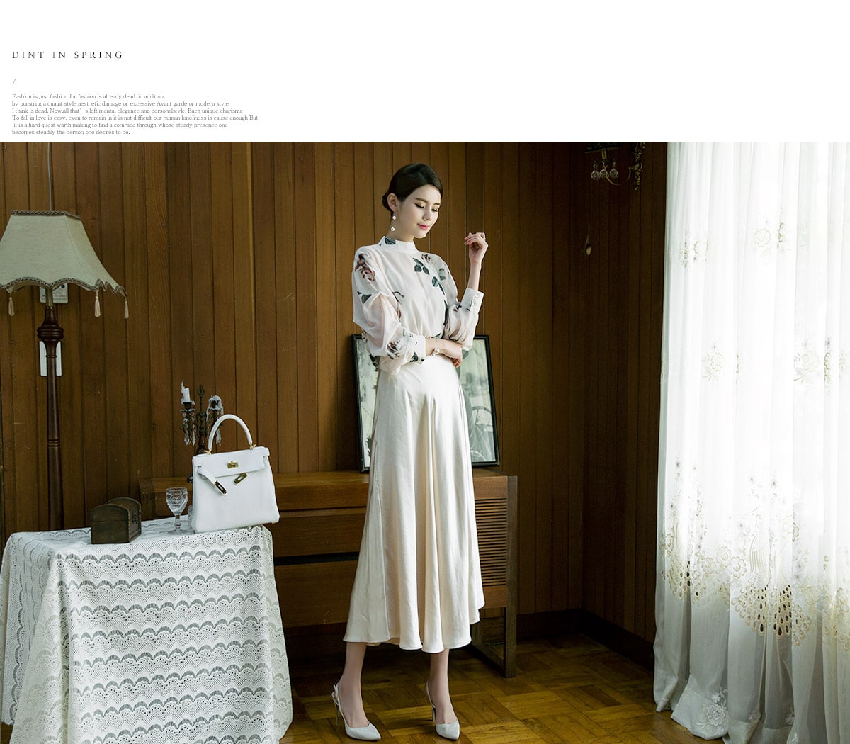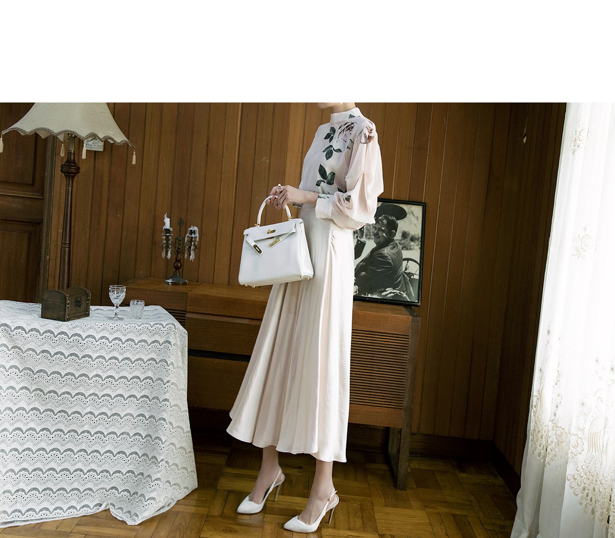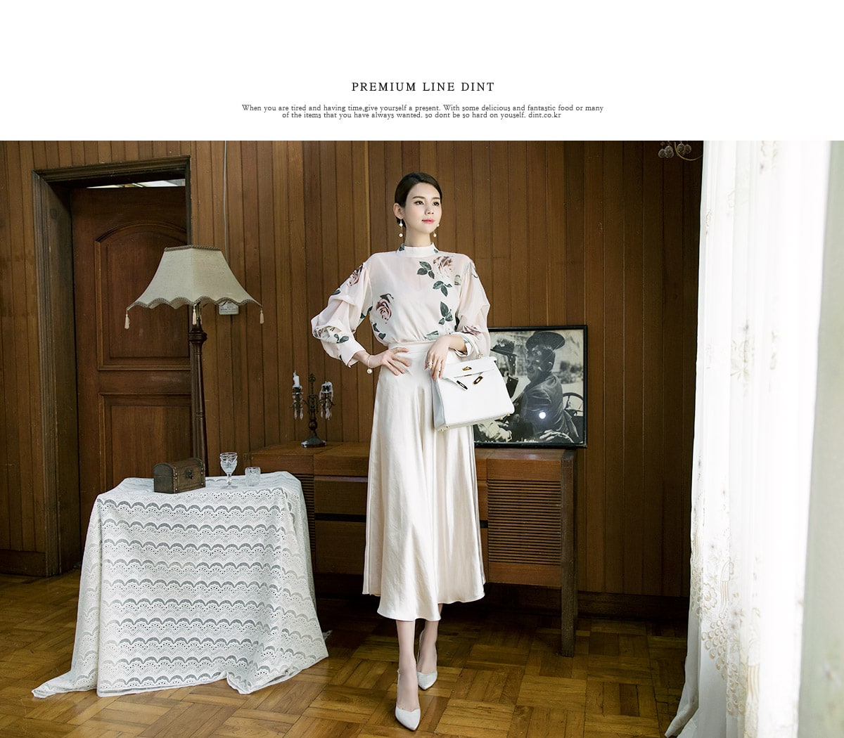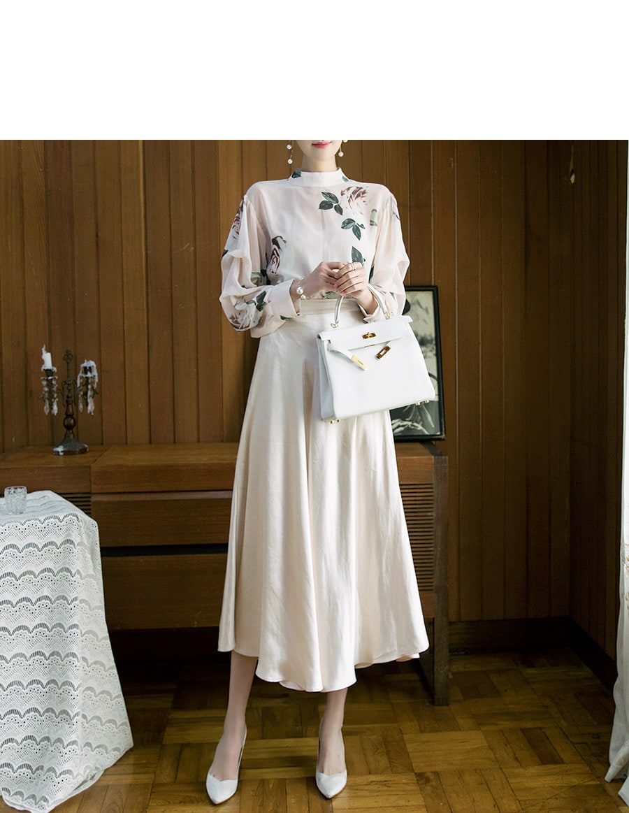 SK1690 에즈라 롱 새틴 스커트 Beige