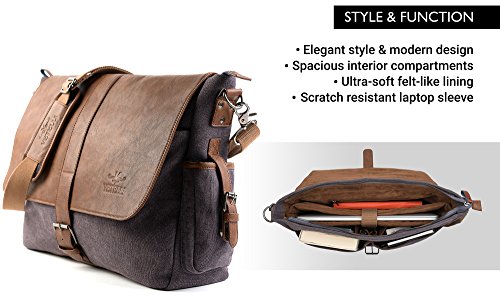 -. Title : Vetelli Laptop Bag / Shoulder Messenger Bag with ScratchProtect™ sleeve for Computers up to 15.6" (Leather + Canvas)