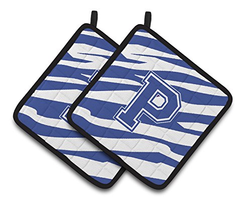 Caroline's Treasures Monogram Initial P Tiger Stripe Blue & White Pair of Pot Holders CJ1034-PPTHD, 7.5HX7.5W, Multicolor
