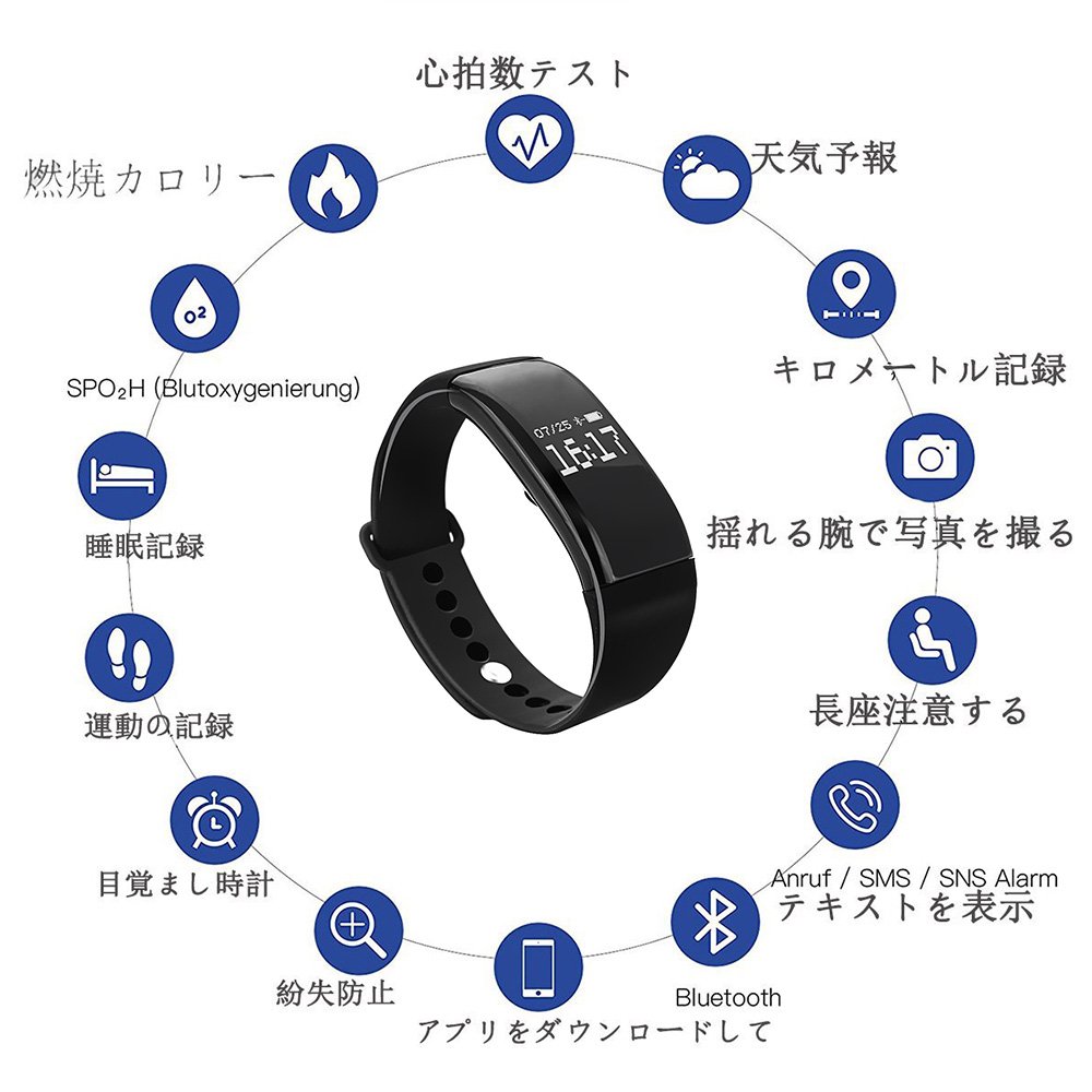 【Multi-function】: Time, Date display, Step count recording, Distance, Heart rate measurement, Calorie consumption display, Sleep time and quality inspection, Long seat attention, Camera remote control, Automatically lit up with arms raised, Vibe when inconvenient to smartphone