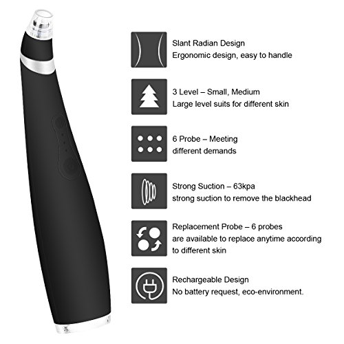 - WATERPROOF AND EASY CLEANING- Splash waterproof design, superior filtration within probe head, can effectively prevent dirt into the interior of blackhead remover machine, easy to use