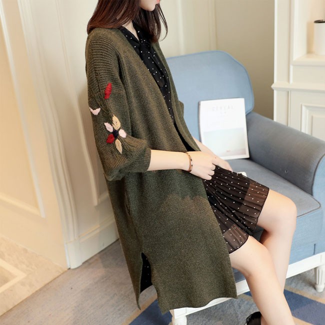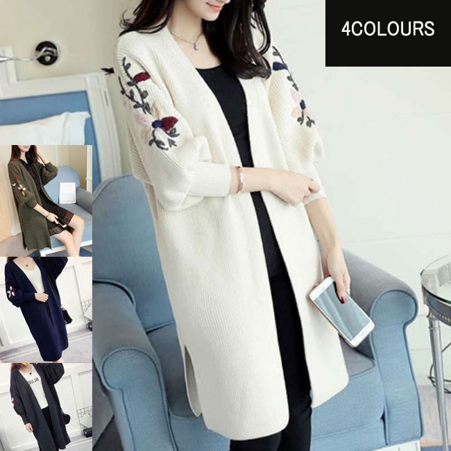 | 商品名 | ニットカーディガン ロング レディース ビッグシルエット 花柄刺繍カーディガン ボタンなし 無地 ローゲージ編みカーディガン オーバーサイズ |