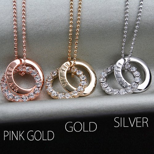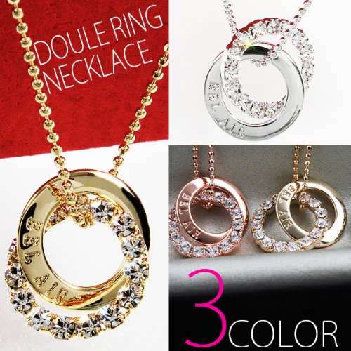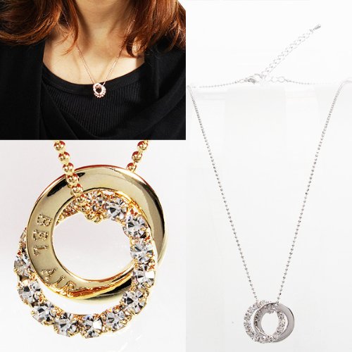 Of Necklace Ladies Pink Gold 2 consecutive overlaid with double ring necklace rhinestone pendant