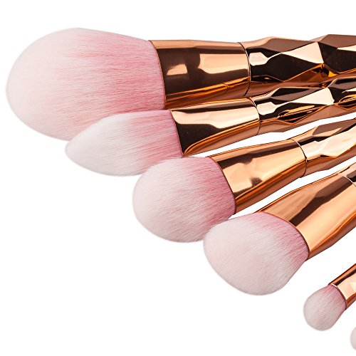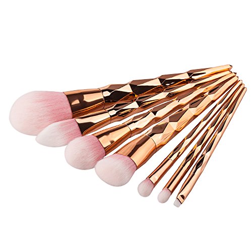 - 7pcs Diamond Shape Rose Gold Makeup Brushes, durable for comfortable and long term using.