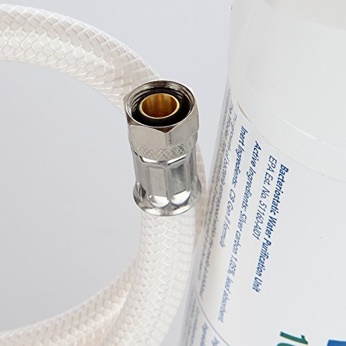 - FILTERS THAT LAST: The Woder Fluoride Filters last 2 years, or 5,000 gallons. Comes as a complete assembled kit. Includes: Filters, Dual head with a built-in valves, inlet hose - 3/8 female compression by 1/4 standard pipe thread, outlet hose- 3/8 m compression by 1/4 standard pipe. Replacement filters ASIN B0144MFN92 (Gen2) and ASIN B0144MFK1I (FRM)
