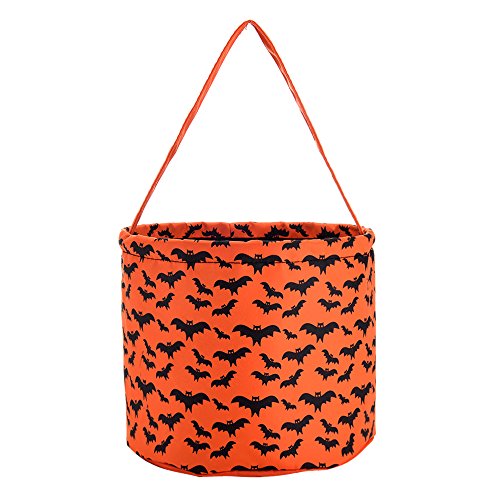 X.Sem Halloween Basket Childrens Fabric Candy Bucket Tote Bag Durable Gifts Storage Containers for Kids (Bat)