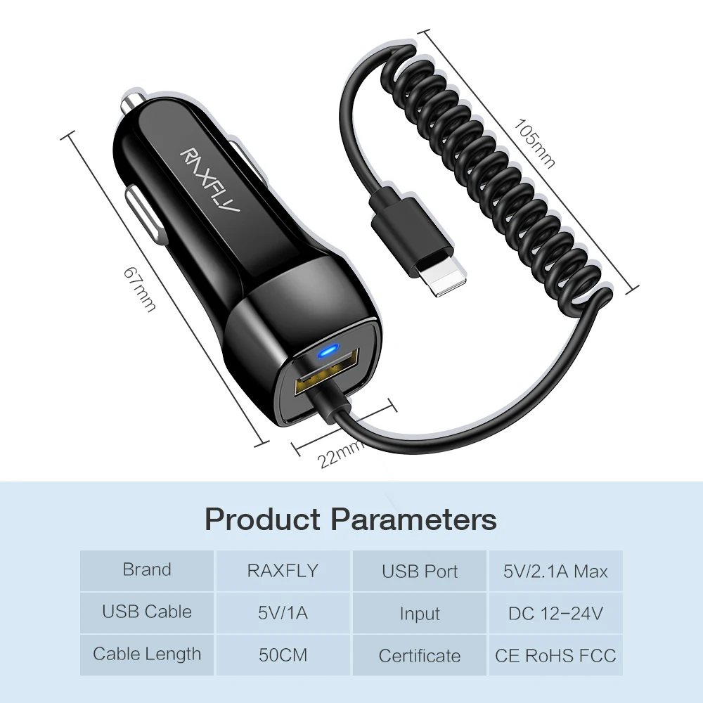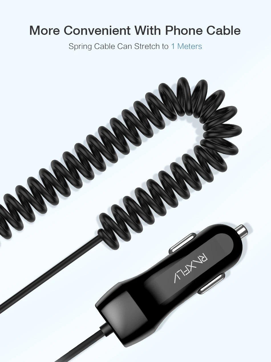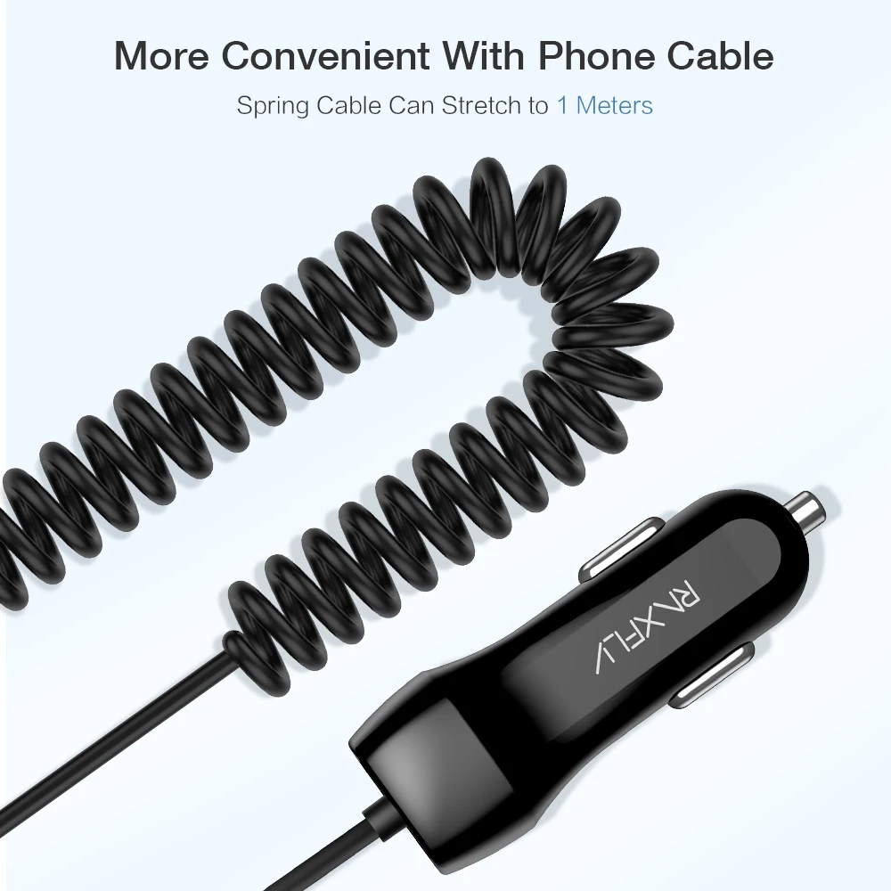 with spring cable for iphone :Car-charger Adapter For iPhone X For iPhone 8 7 6 6s 5 5s SE Charger