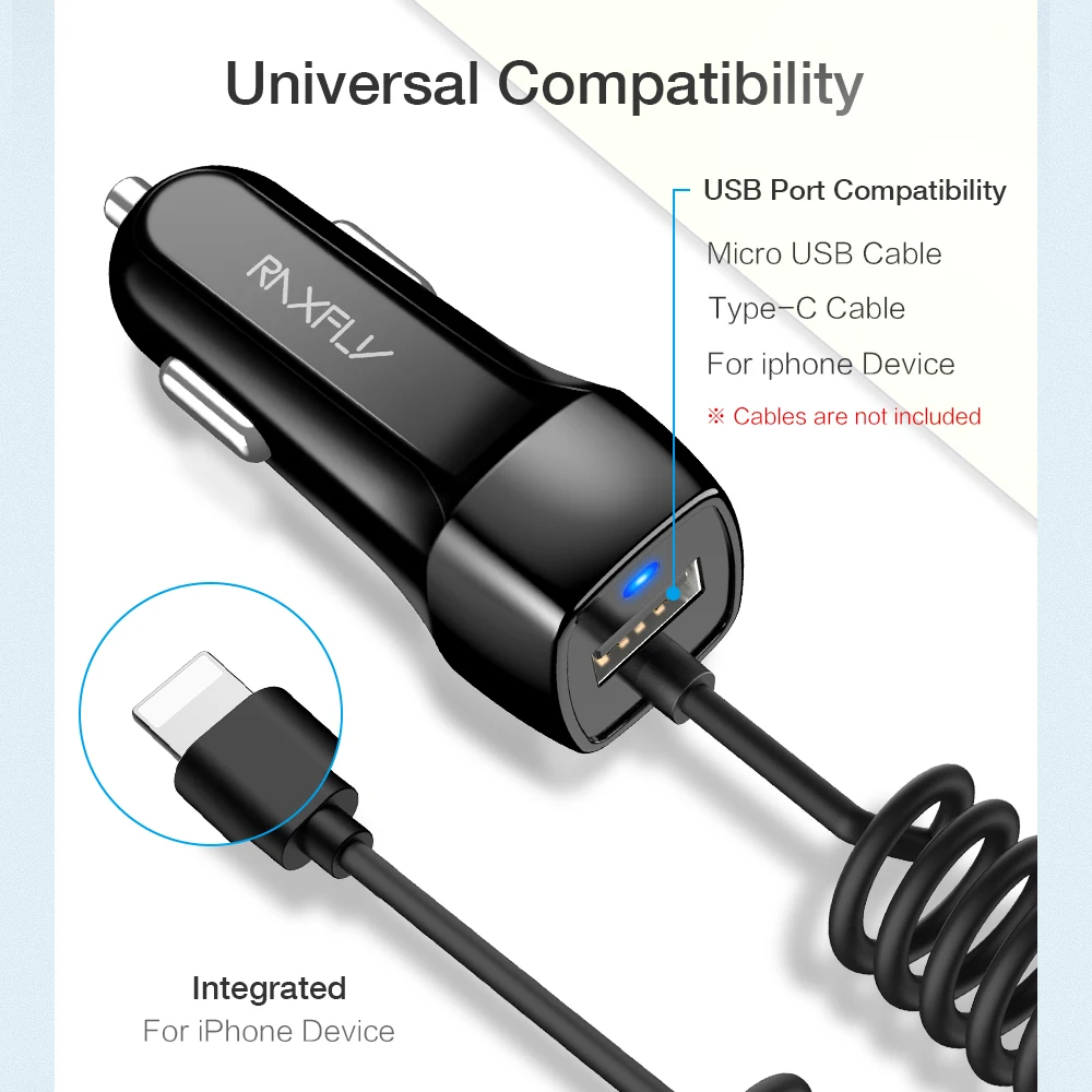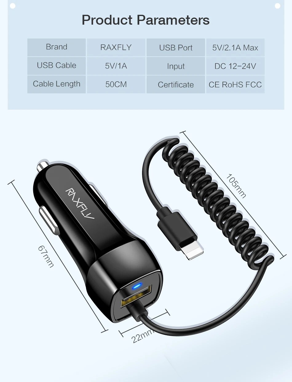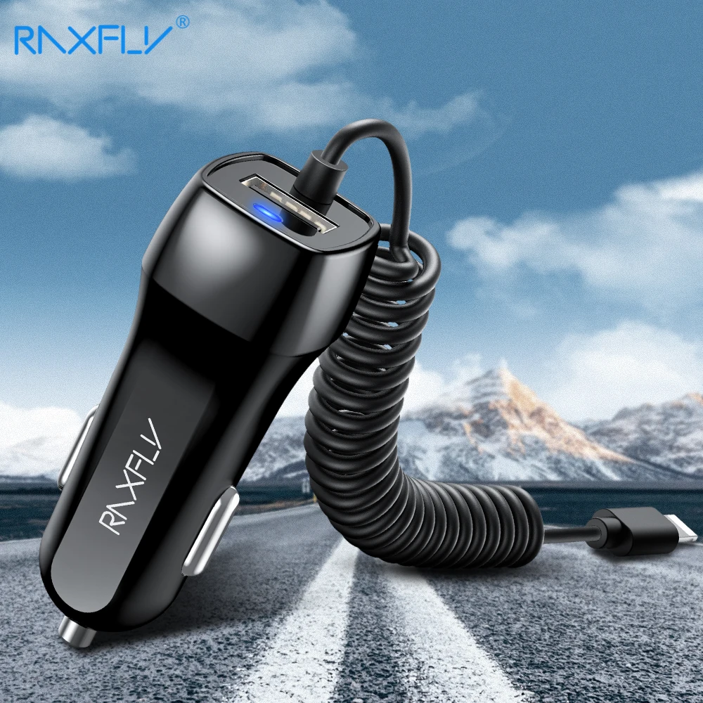 with spring cable for iphone :Car-charger Adapter For iPhone X For iPhone 8 7 6 6s 5 5s SE Charger