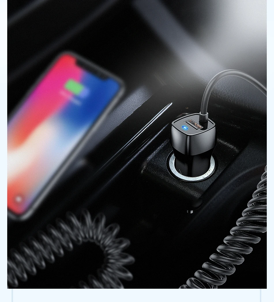 Feature 1:Dual USB (2 ports) 5V / 2.4A Fast Charging Car Cha