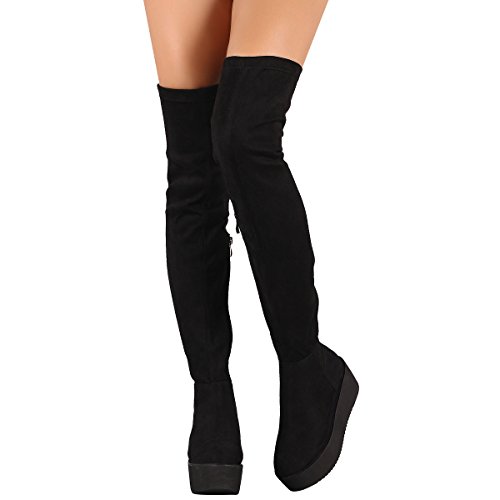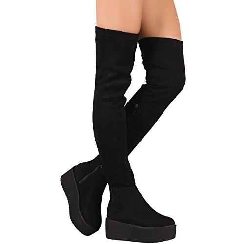 Binding : Apparel Product Description Give your look a lift! Now this is the over the knee high we can get with! Go from day-to-night in a tee-shirt dress for a very on-trend sport if look! These thigh high boots feature faux suede, round toe, lug sole flatform, and partial side zipper for easy on/off. Finished with lightly cushioned insole 0