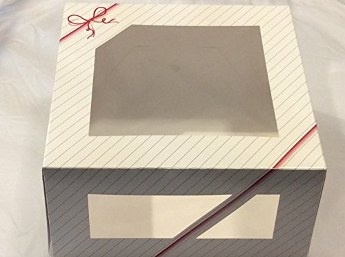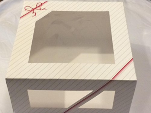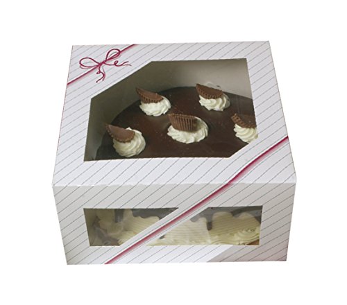 window cake boxes 10x10x5 - 8 boxes - 10" Length x 10" Width x 5" Height - Paperboard Auto - Popup Window Cake and pie Bakery Boxes - pink striped and string Graphic design