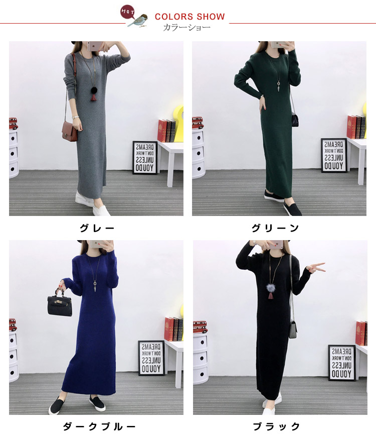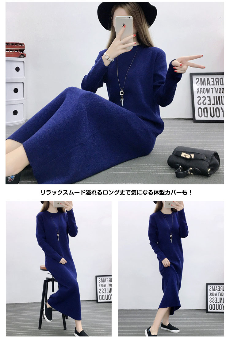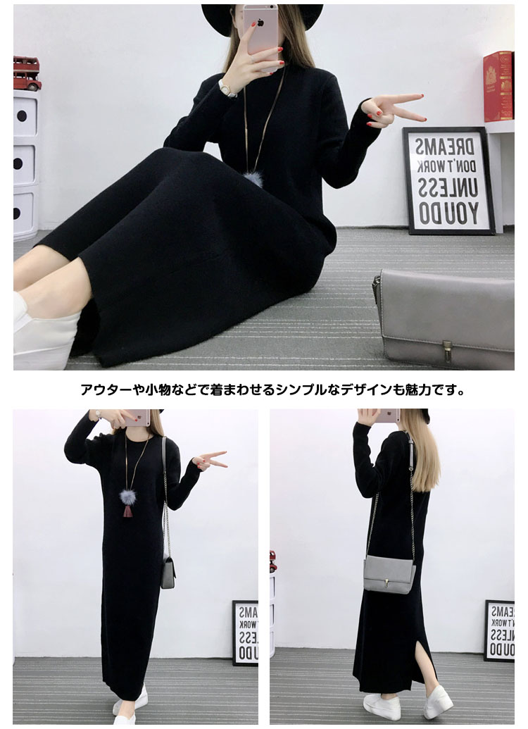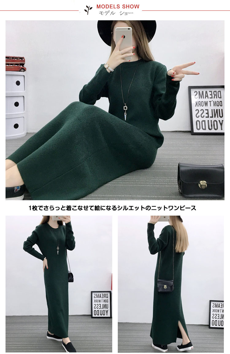 | 1枚でさらっと着こなせて絵になるシルエットのニットワンピース。リラックスムード溢れるロング丈で気になる体型カバーも!柔らかく暖かな着心地でデイリーに活躍!1枚で大人のあったかコーデが完成する、この季節欠かせないITEM!アウターや小物などで着まわせるシンプルなデザインも魅力です。 | |