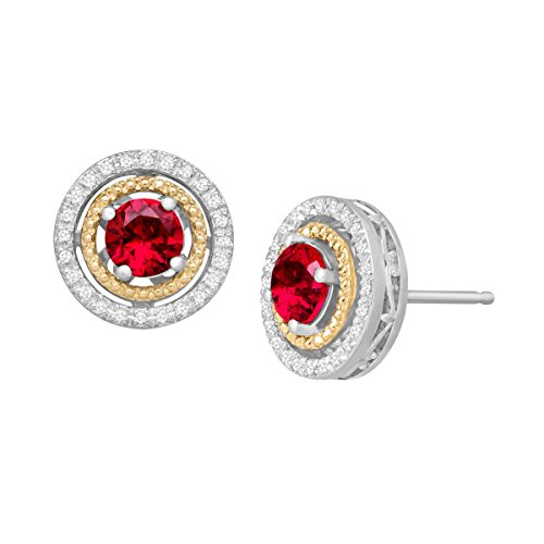 These sparkling studs count as classic ruby accents perfect for every occasion. Two round-cut created rubies totaling 1 1/3 ct are wrapped in diamonds totaling 1/8 ct, and are set in 14K gold and sterling silver. Pieces measure 7/16 by 7/16 inches.Feature