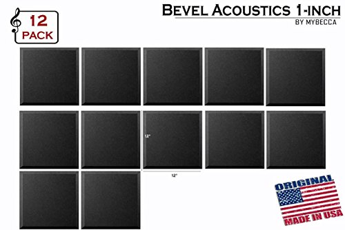 Mybecca [12 PACK] Acoustic Foam BEVEL Tiles Soundproofing Wall Panel 12 x 12 x 1 inch, Made in USA