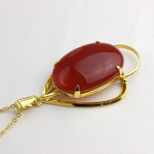 -. Title : レッドアゲート オーバルカボションカット ペンダント ネックレス Red Agate Ovel cut pendant necklace 約29×21mm